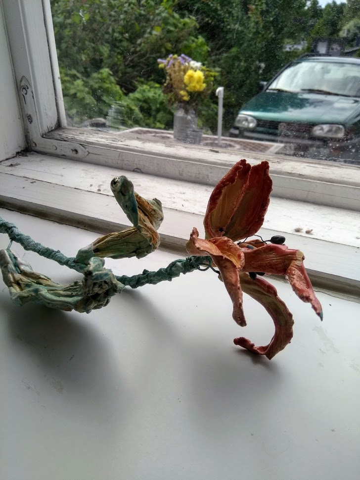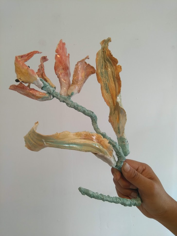 B) Pitääko tuoda kukkia?-Ei. Enää ei ole sellasta pakkoa.Taiteilija voi olla bussilla tai junalla liikkeella ja silloin kukka voi olla tiella. Silloin taiteilija jättää kukan gallerian nurkkaan kuivumaan. Mut jotkut voi tykätä.