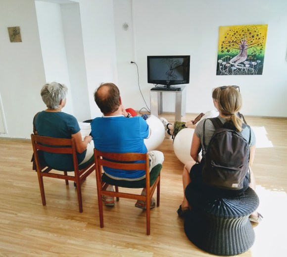 Välillä meiltä kysytään, miksi emme paljasta teoksia heti kokonaan netissä. Siksi koska olemme Etsivätoimisto. Haluamme että taide koetaan niin kuten se tulisi kokea ensisijaisesti. Itse, paikan päällä. Eero Aarnion ja Komugi Andon näyttelyssä on paljon elementtejä jotka jäävät kokematta jos niihin tutustuu vain netin välityksellä. Miltä tuntuu istua maailman parhaassa puuesineessä, kun ryhti suorenee ja…